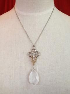 アンティーク調ドロップしずくネックレス:ホワイトドロップ×シルバーチェーン