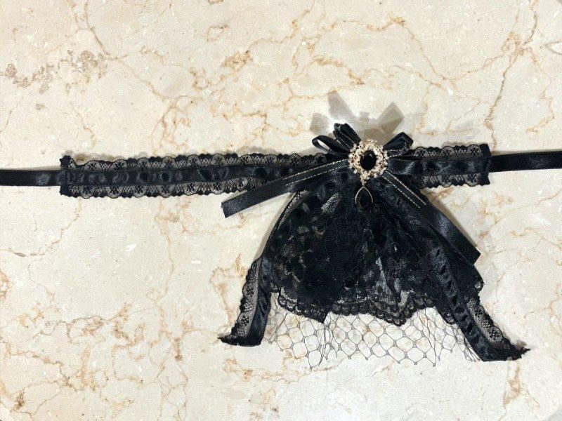 ◆受注商品◆バラ・ジュエリー付きコサージュ2WAYヘッドドレス:黒ベロア×白レース