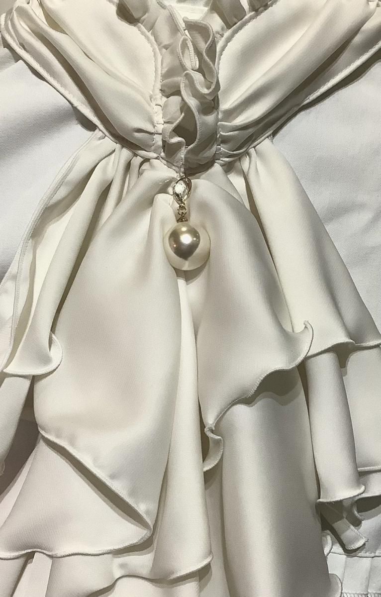◆受注商品◆コサージュ付きロマンティックドレープフリルワンピース:黒白
