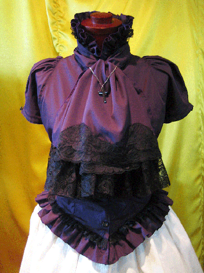 ゴシックエレガンス調アシンメトリー堕天使ドレスセット:黒×黒フリル
