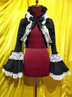 ◆受注商品◆ボリュームフリルフェミニンヘッドドレス:黒×黒すかしチェック柄×黒バラ