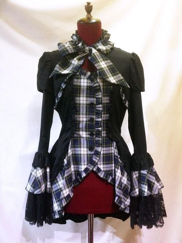◆受注商品◆バッスルリボン付きワンピース型配色切り替えロングジャケット:黒チェック