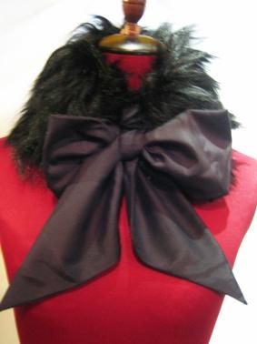 2WAYファーティペットorファーマフラー:黒毛足長ファー×黒リボン