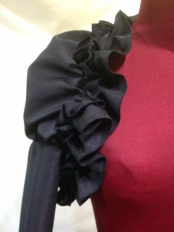 ◆受注商品◆デコレーションクロス付きファー衿ケープ:黒×ボルドー