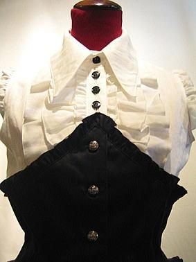 ゴシック調タイ付き総フリルパフスリーブブラウス:白ストレッチ