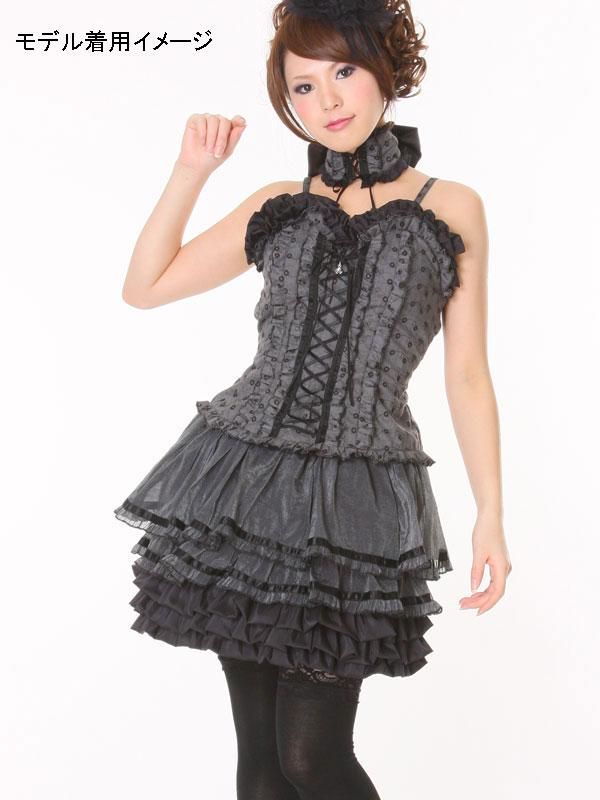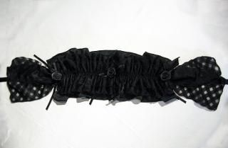 ◆受注商品◆ボリュームフリルフェミニンヘッドドレス:黒×黒すかしチェック柄×黒バラ