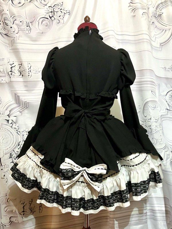 ◆受注商品◆流麗フリルアシンメトリーロングスカート:黒シフォンフリル