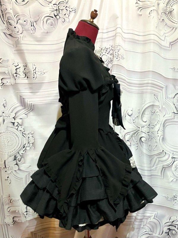 配色切り替えデコラティブドレスワンピース:黒×黒×白レース
