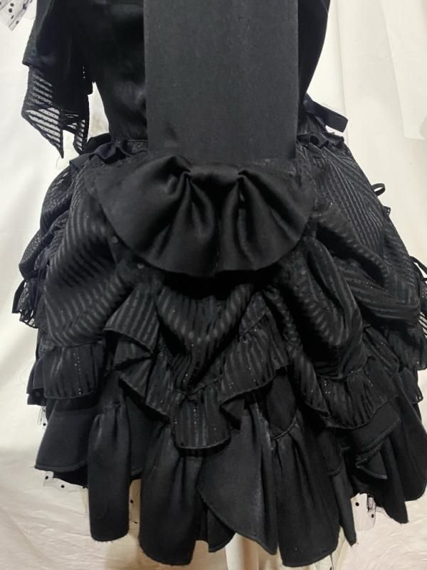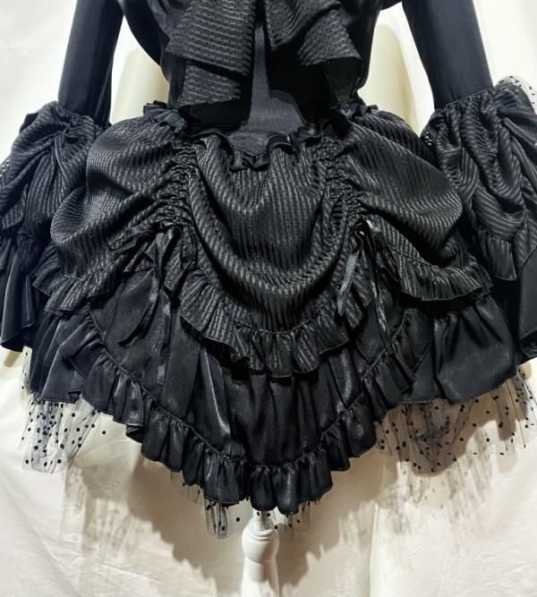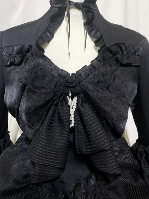 ◆受注商品◆サテンバラ付きレース飾りティアードサンドレス:黒×白レース×黒サテンバラ