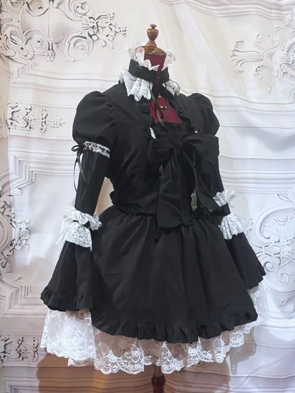 ◆受注商品◆ブラウス付き風全身コーディネートワンピース:黒×黒白チェック