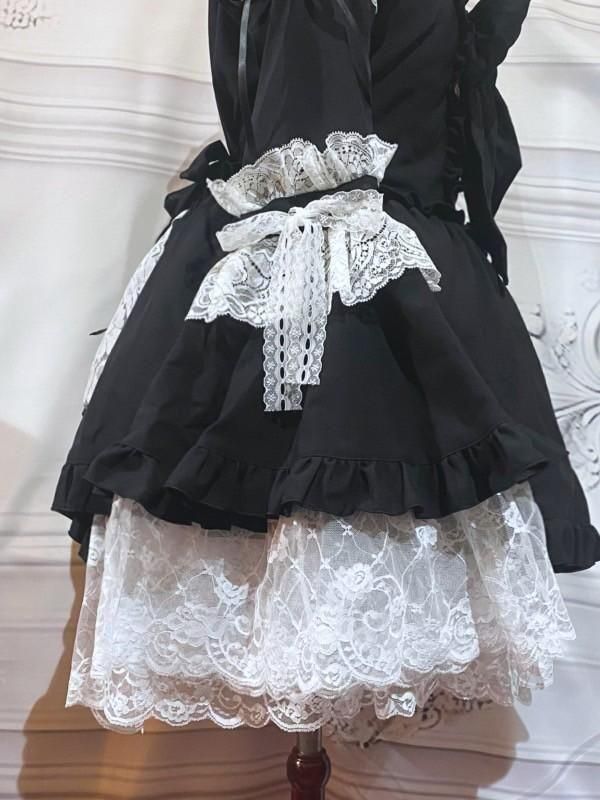 ◆受注商品◆レース重ね後長レイヤードスカート:黒ベロア×黒レース