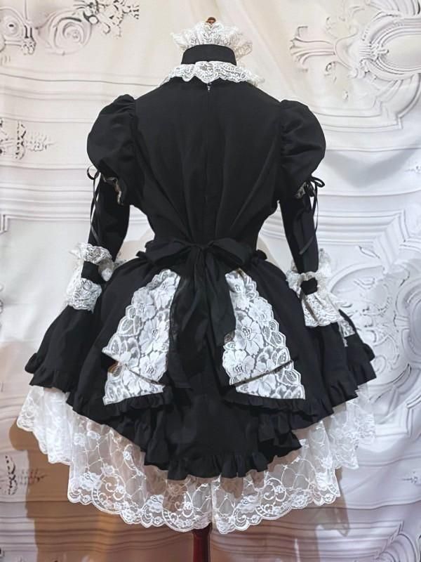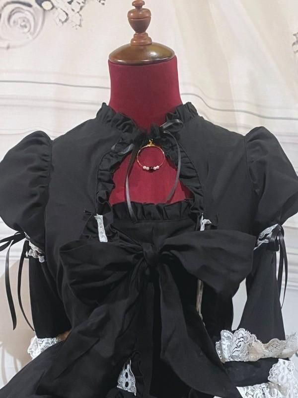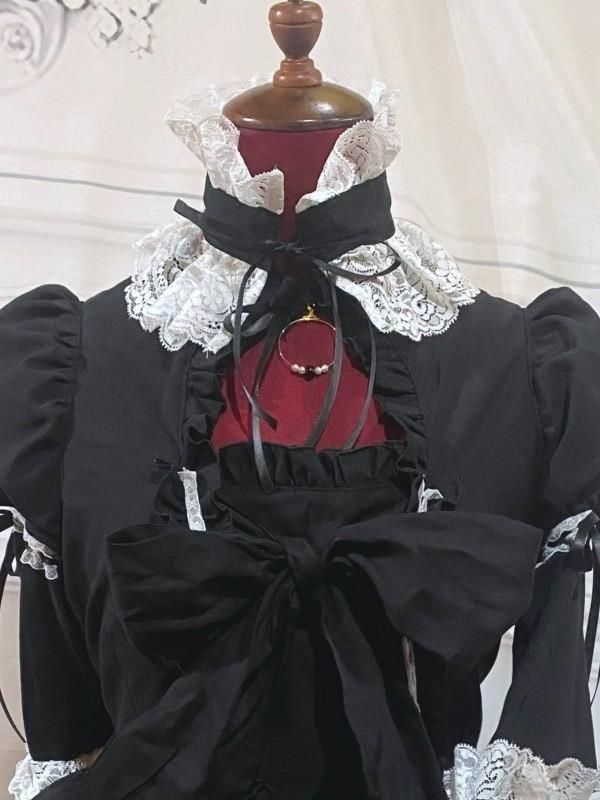 ◆受注商品◆別タイ付きクラシカルデコレーションブラウス:白×黒×黒レース