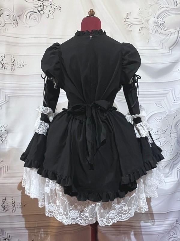 ◆受注商品◆編み上げ総フリルドレスワンピース:紺紫チェック×黒レース