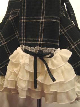 ◆受注商品◆エンブレム飾りチェーン付きハイウエストドレープスカート:黒ストライプ×黒フリル