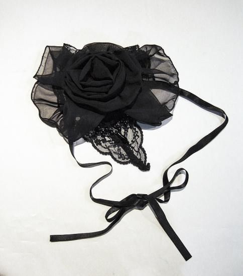 ・やわらか素材の大きなバラが印象的なゴシックフェミニン調のドレッシーなヘッドドレス。