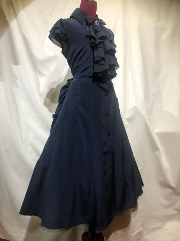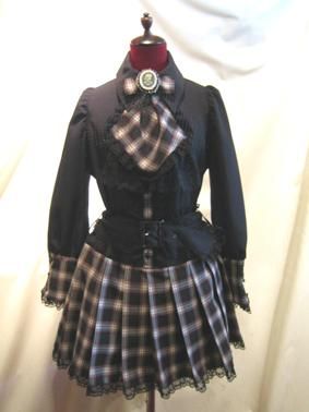 ◆受注商品◆ドレープタイ付きゴシックエレガンスブラウスワンピース:ボルドー×黒