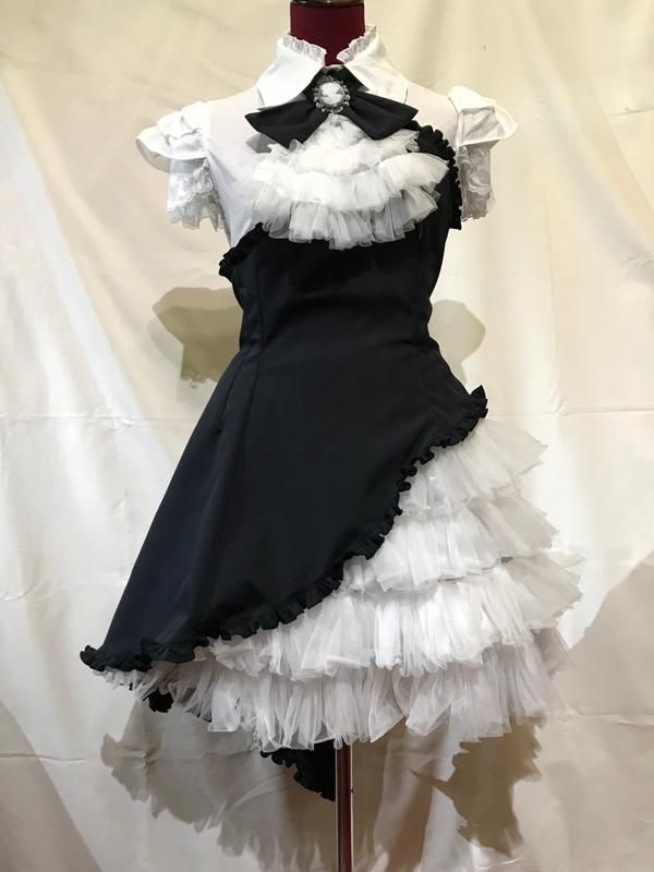 ◆受注商品◆ブラウス付き風アシンメトリーフリルレースワンピース:白