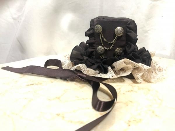 ◆受注商品◆エンブレム飾りチェーン付き小帽子:茶×ベージュレース×銅古美ボタン