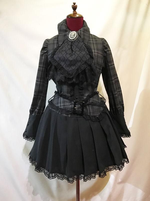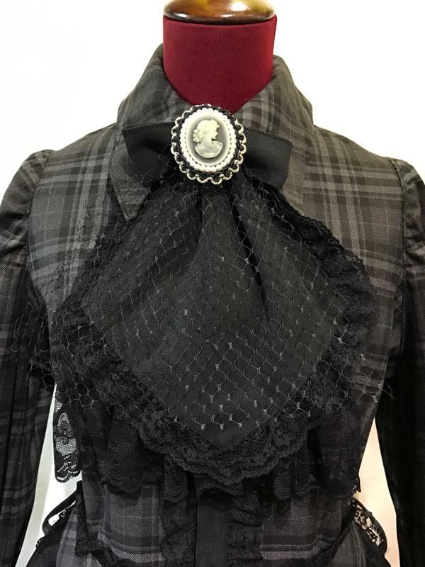 ★アンティーク調の華やかなカメオブローチタイでの着こなしと黒しずくアクセサリーが付いた黒ハート柄タイでの着こなしもできる2WAYの着回しが可能なタイ付きブラウスワンピース。