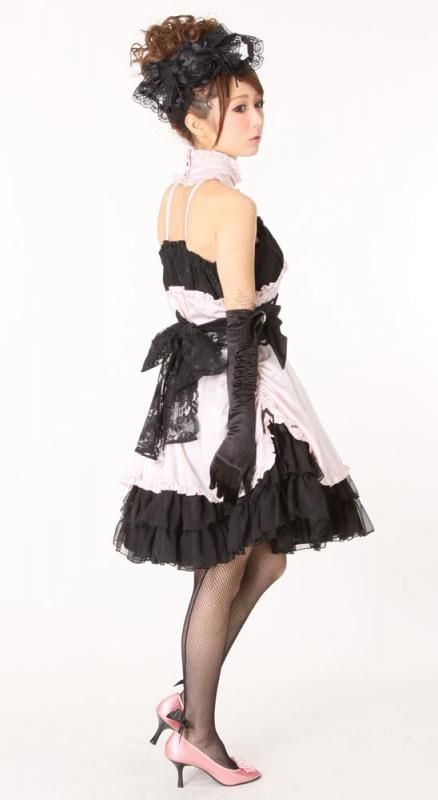 アクセサリー付きフェミニンドレスワンピース+レースショール+レースベルト:黒×白