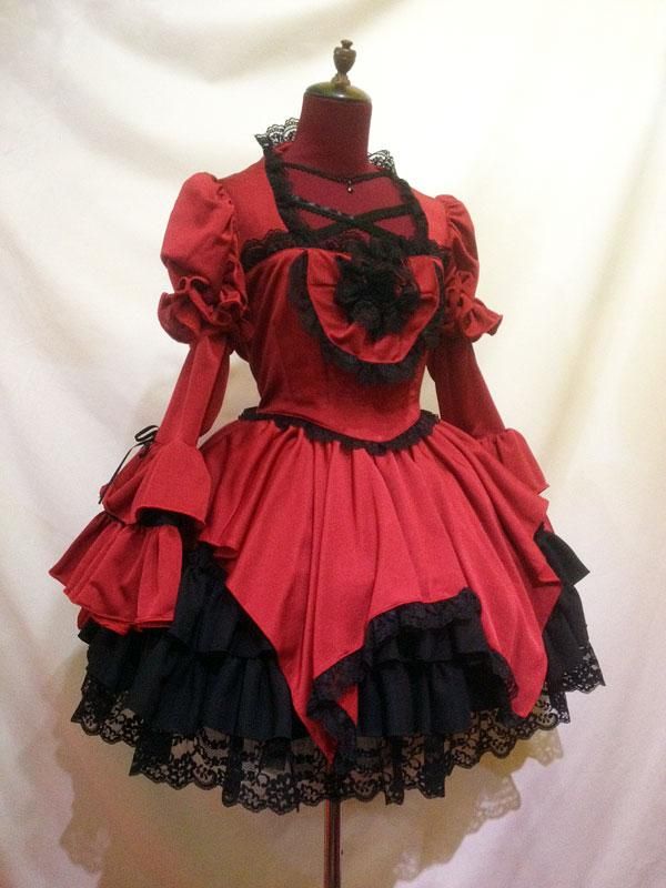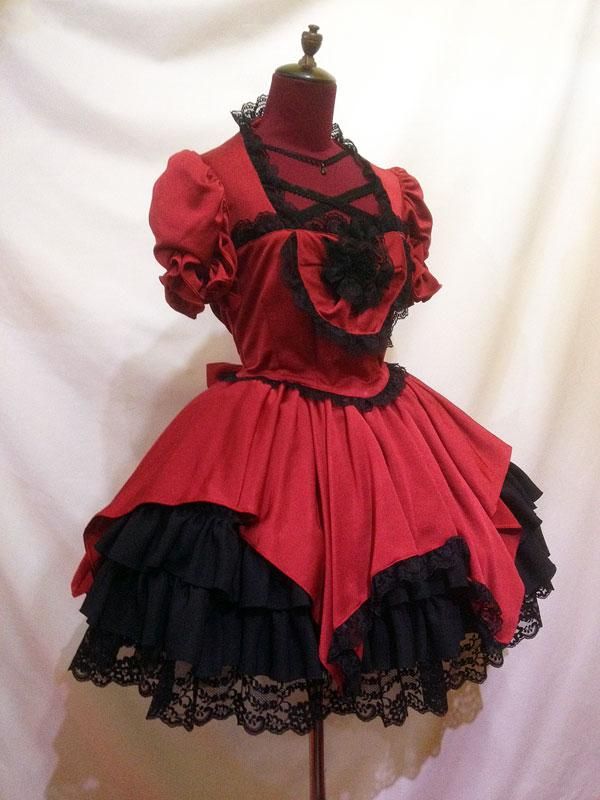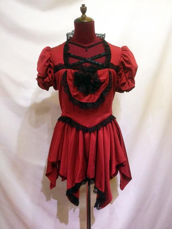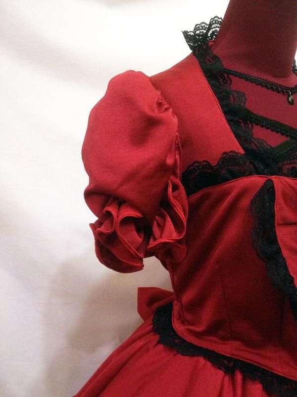 ★アーチブレードであみあげたアクセサリー付きのチョーカーがついたアンティーク調のワンピース。