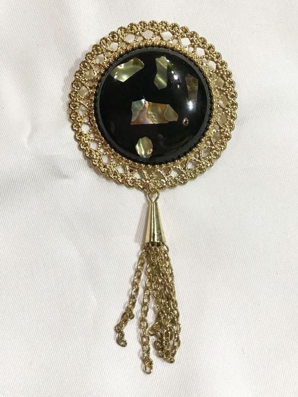アンティーク調ゴシックブローチ:アンティークゴールド円×黒石