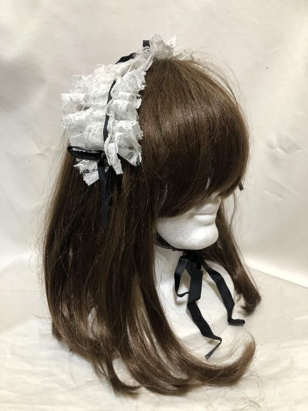 総レースボリュームフリルヘッドドレス(小):白レース×黒リボン