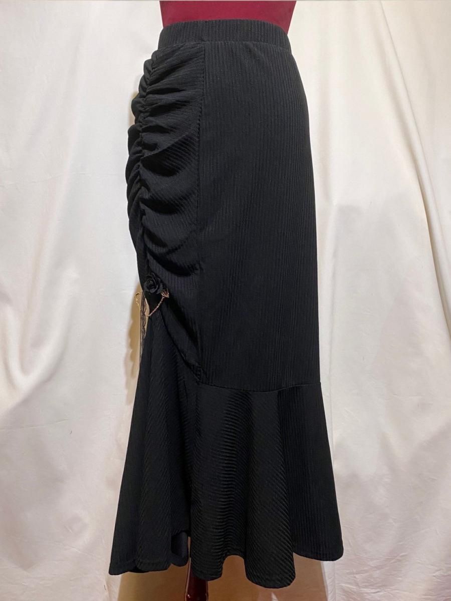 ◆受注商品◆エンブレム飾りチェーン付きハイウエストドレープスカート:黒