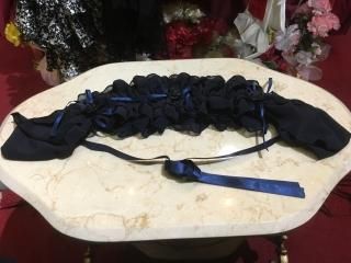 ◆受注商品◆ボリュームフリルフェミニンヘッドドレス:紺×紺リボン×黒バラ