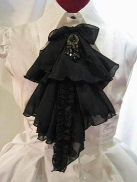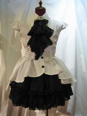 ◆受注商品◆ゴシック調タイ付きドレープジャケットワンピース+パ二エ入りフリルレイヤードスカート:白ストライプワンピース×黒スカート