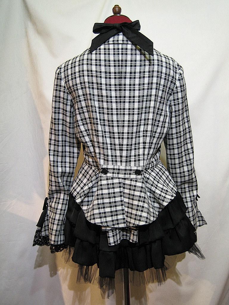 ◆受注商品◆編み上げ総フリルドレスワンピース:黒赤チェック×黒レース