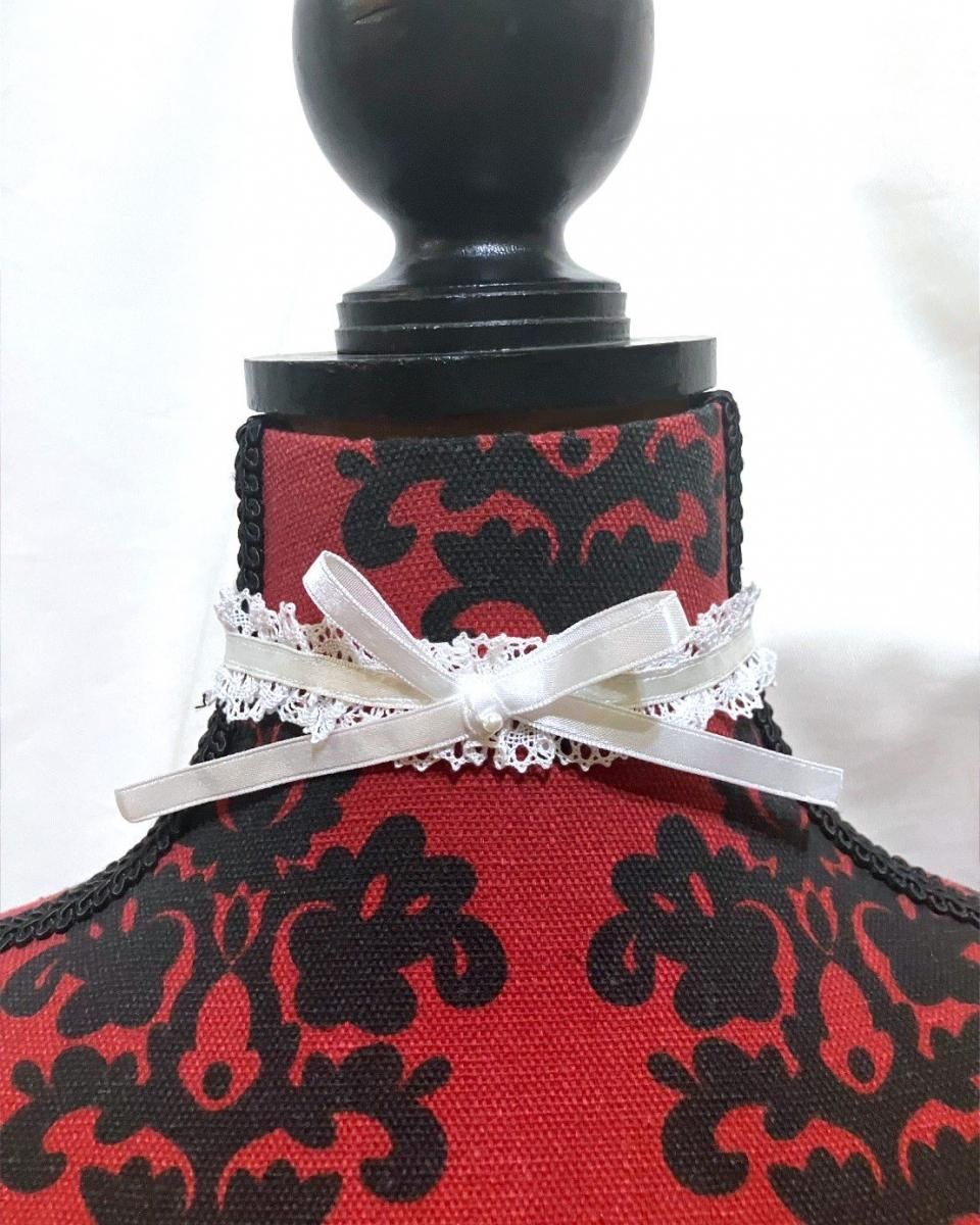 ★リボンの下にパールがついたエレガンスなレースチョーカーです。