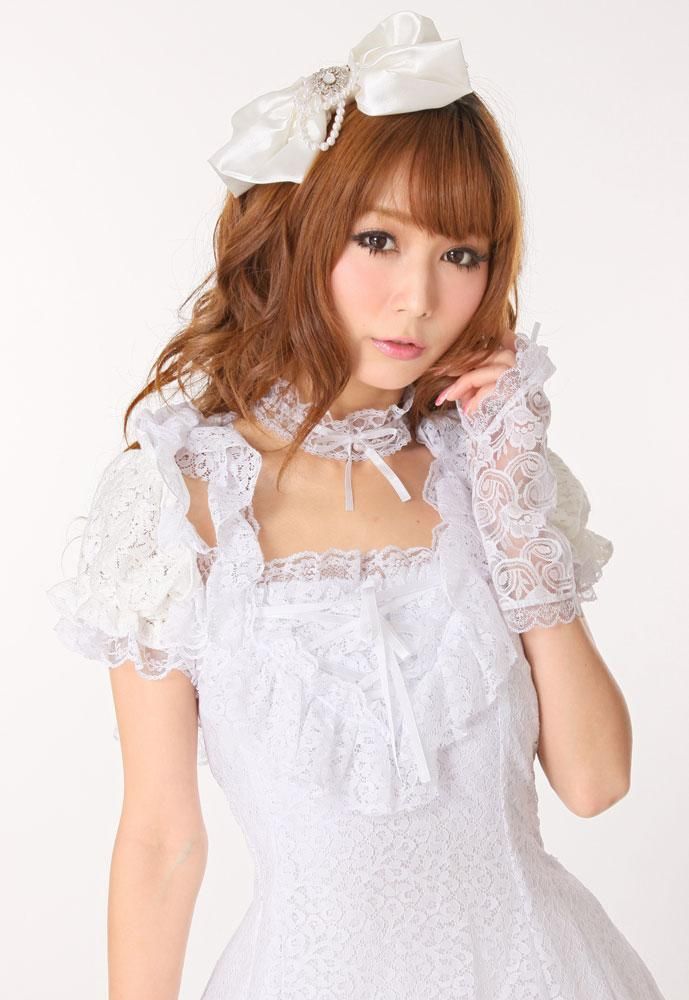 アリス風編み上げドレスワンピース:黒×白フリル×白パール
