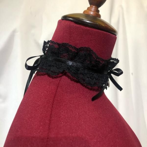 ゴシック調モチーフ付き立ち襟ケープ:オフ白×十字架アンティークハートシルバー