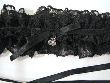 ◆受注商品◆モチーフ付きレースフリルヘッドドレスorチョーカー:黒レース×シルバーバラ
