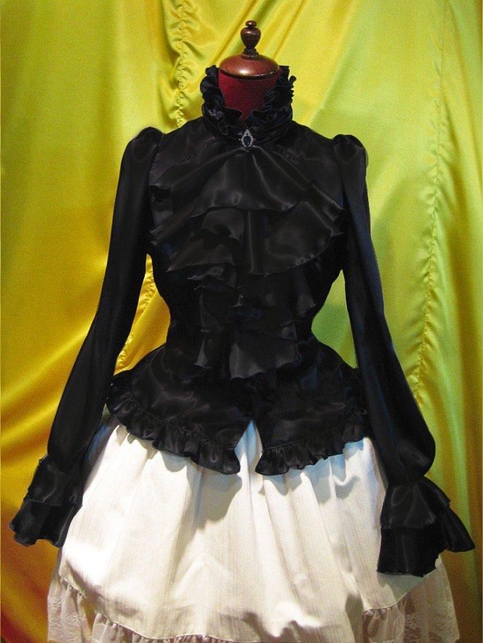◆受注商品◆アンティークビジュー付きボリュームタイブラウス:黒
