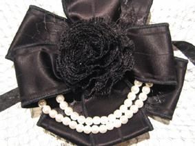 ◆受注商品◆リボン重ねパールきバラボンネット:黒ストライプ×黒ネット×白パール