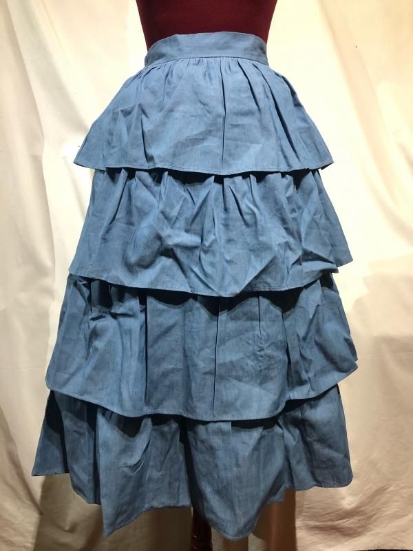 4段フリルロングスカート:水色
