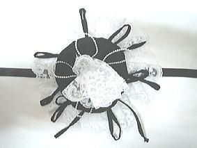 ◆受注商品◆リボンコサージュ付き前開きハイウエストスカート:黒×白レース