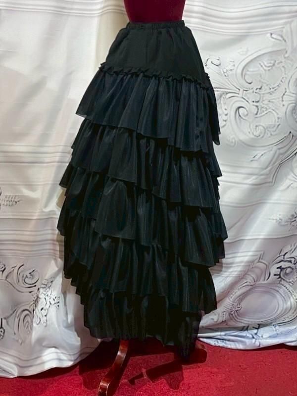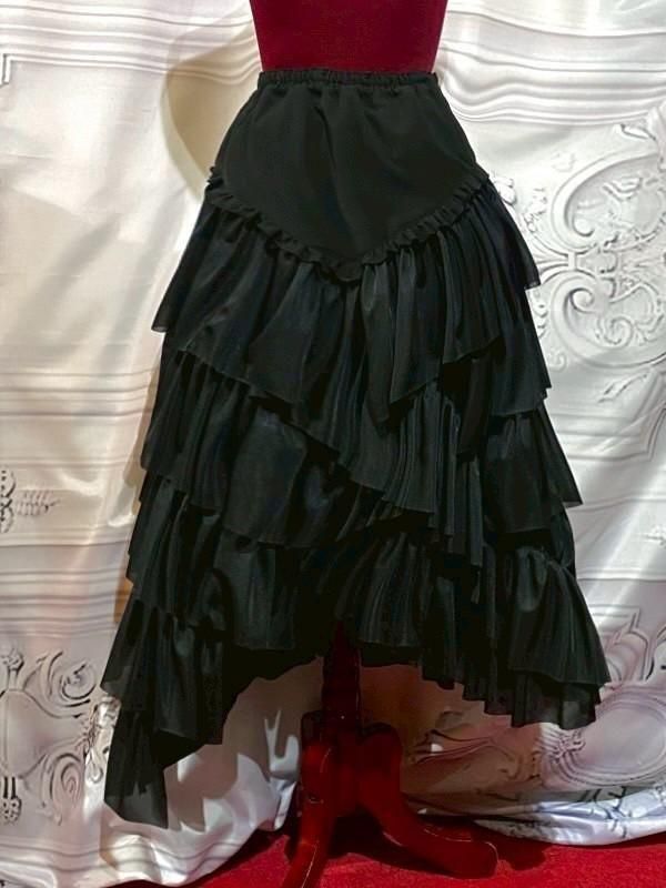 ◆受注商品◆流麗フリルアシンメトリーロングスカート:黒シフォンフリル