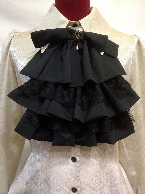 ◆受注商品◆ロマンティックタイ付き総フリルガーリーワンピース:白×黒