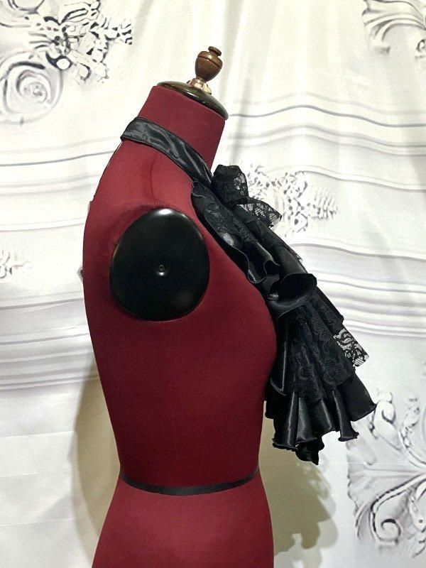 流麗ドレープゴシックエレガンスタイ:白サテン×白レース