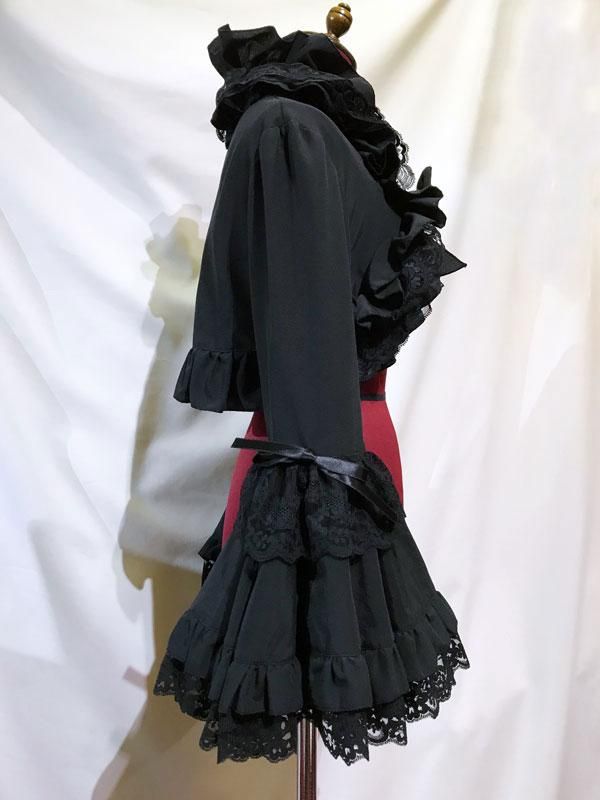 ◆受注商品◆配色切り替えデコラティブドレスワンピース:黒×白×黒レース