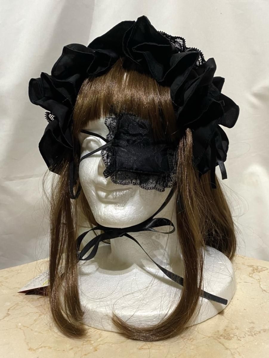 ◆受注商品◆ボリュームフリル&レースヘッドドレス:黒
