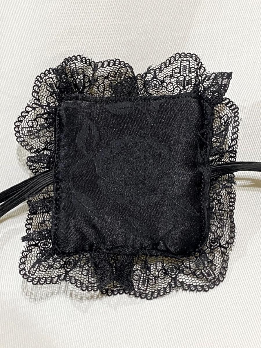 十字架付きリバーシブルアイパッチ(眼帯):黒×黒花柄サテン×銅古美十字架