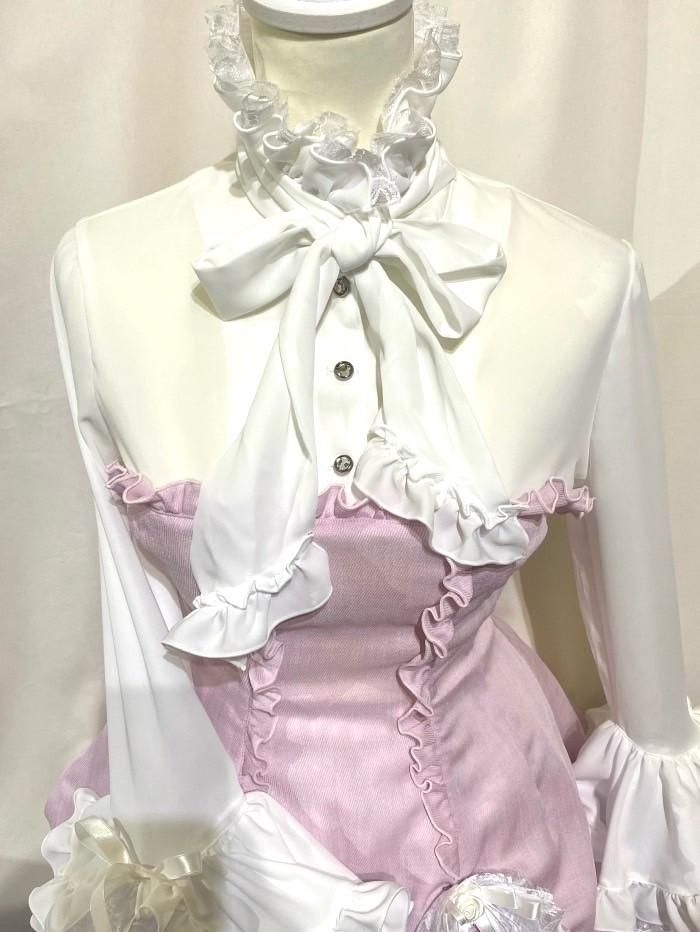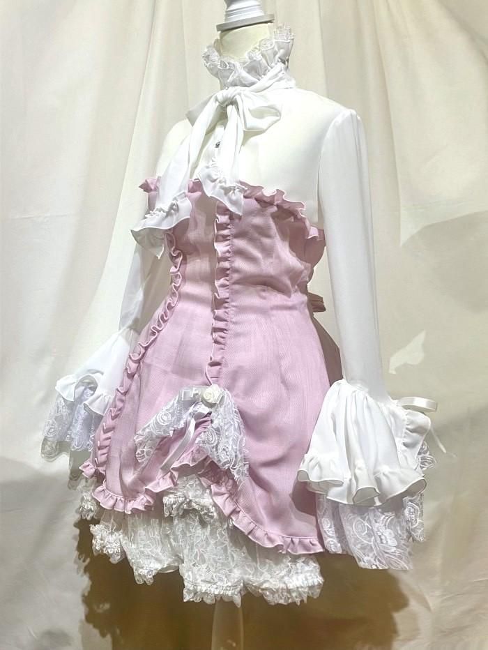 ★ワンピースから覗くレース地ボリュームリボンフリルが華やかなスカート付きのエレガンス・ゴシックコーディネートのセット商品。