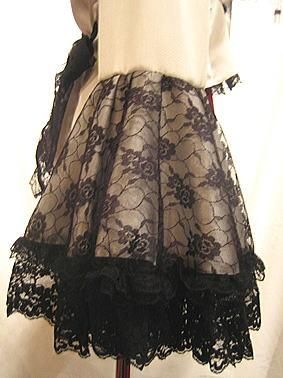 ◆受注商品◆パニエ入りボリュームレース付きスカート:黒×白レース