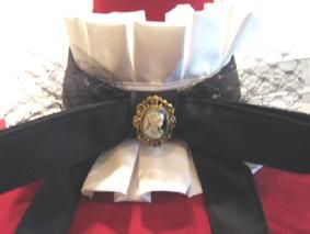 ★タックプリーツが独創的なタイと高級感あふれるカメオブローチ付きのクラシカルなタイが2点セットになった2WAYブラウス。