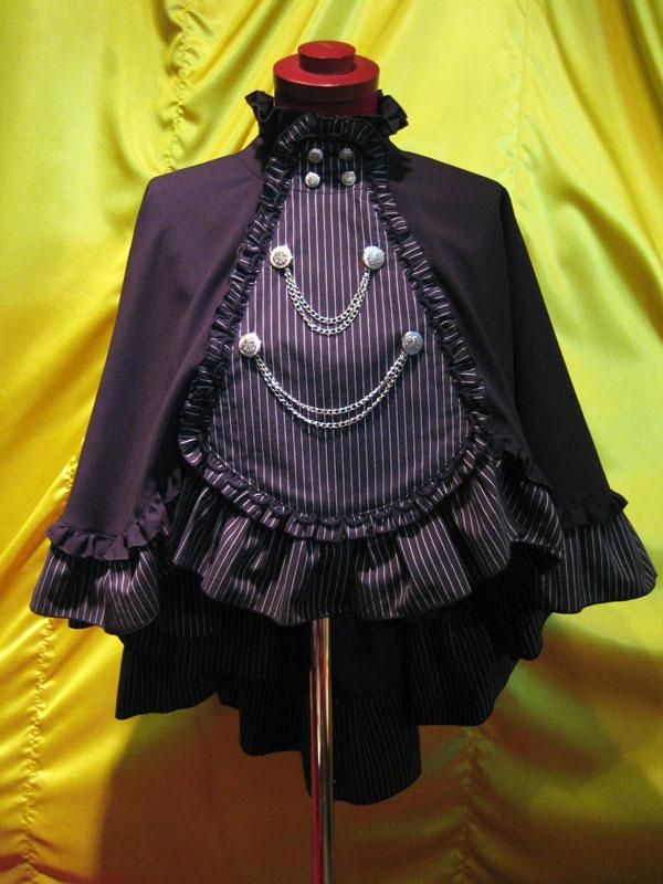 ◆受注商品◆エンブレムチェーン付き後長フレアーマント:黒白ストライプ