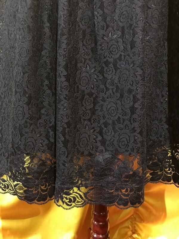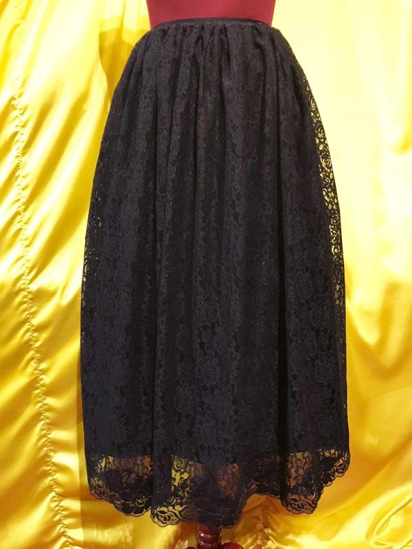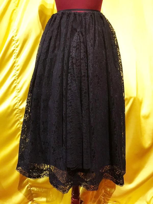 バッスルレース付きスカラップレースロングスカート:黒バラ柄レース